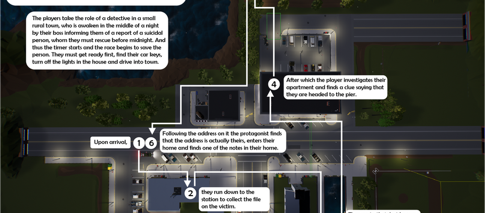 The game's setting and visuals are inspired by David Lynch's series Twin Peaks (1990) where players are tasked with solving the mystery of an alleged suicide attempt and saving the affected individual. The narrative is structured around the concept of the unreliable narrator and the ending invites replayability by introducing multiple levels of ambiguity about what the players just experienced.